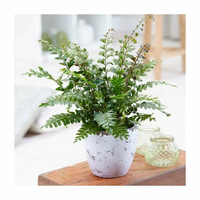 Ferns are some of the oldest varieties of plants still in existence today and they grow all over the world in differing shapes and sizes. You can fill your home with a wonderful mix of these plants with this set of three plants, showing off the variety of their beautiful foliage. These plants love humidity; a shadier spot in a bright bathroom can be the perfect location, but humidity can be achieved anywhere in the house with a spray bottle to mist the leaves. The beautiful foliage of these ferns makes them a great houseplant for adding life and colour to any space.