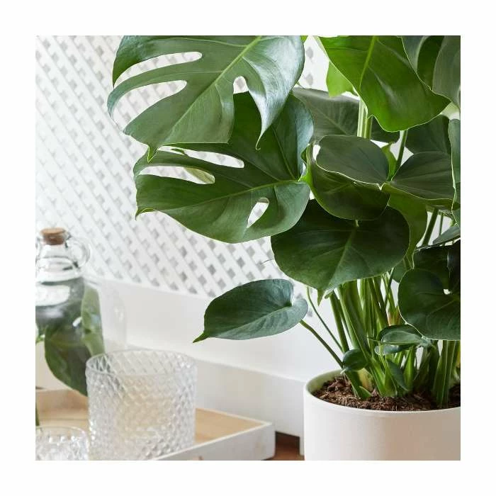 One of the most iconic and recognisable house plants, the Monstera Deliciosa has been a favourite for decades now. Very easy to grow the monstera is the perfect variety for beginners who want a big impact plant for their collection. Originally from the tropical forests of Mexico these plants can grow over 60 feet tall in the wild. Indoors they are a little more tame, but their fast growth and large leaves make them a favourite for many. The characteristic leaves will slowly unfurl and darken to a beautiful deep green and the older the plant the more perforations will appear on the leaves; a trait which earned it the name of ‘Swiss Cheese Plant’. Monstera’s can be displayed in a number of ways, either trained to climb up, usually with the assistance of a moss pole, or left to spread out wild and care free. NASA has also rated the monstera as one of the best air purifying houseplants.